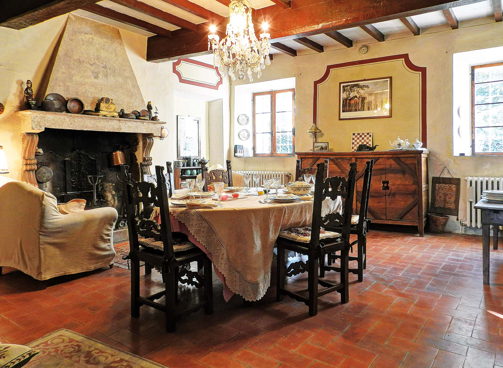 Locali interni con camino e arredamenti storici sono stati testimoni di gesta e vita quotidiana.